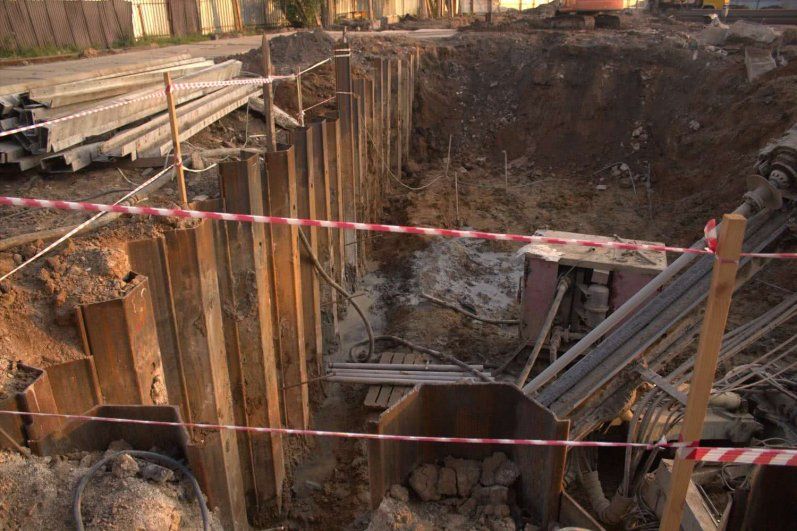 Наши специалисты провели комплексные работы по устройству шпунтового ограждения котлована при строительстве многоэтажного жилого дома с подземной автостоянкой и встроенными помещениями общественного назначения